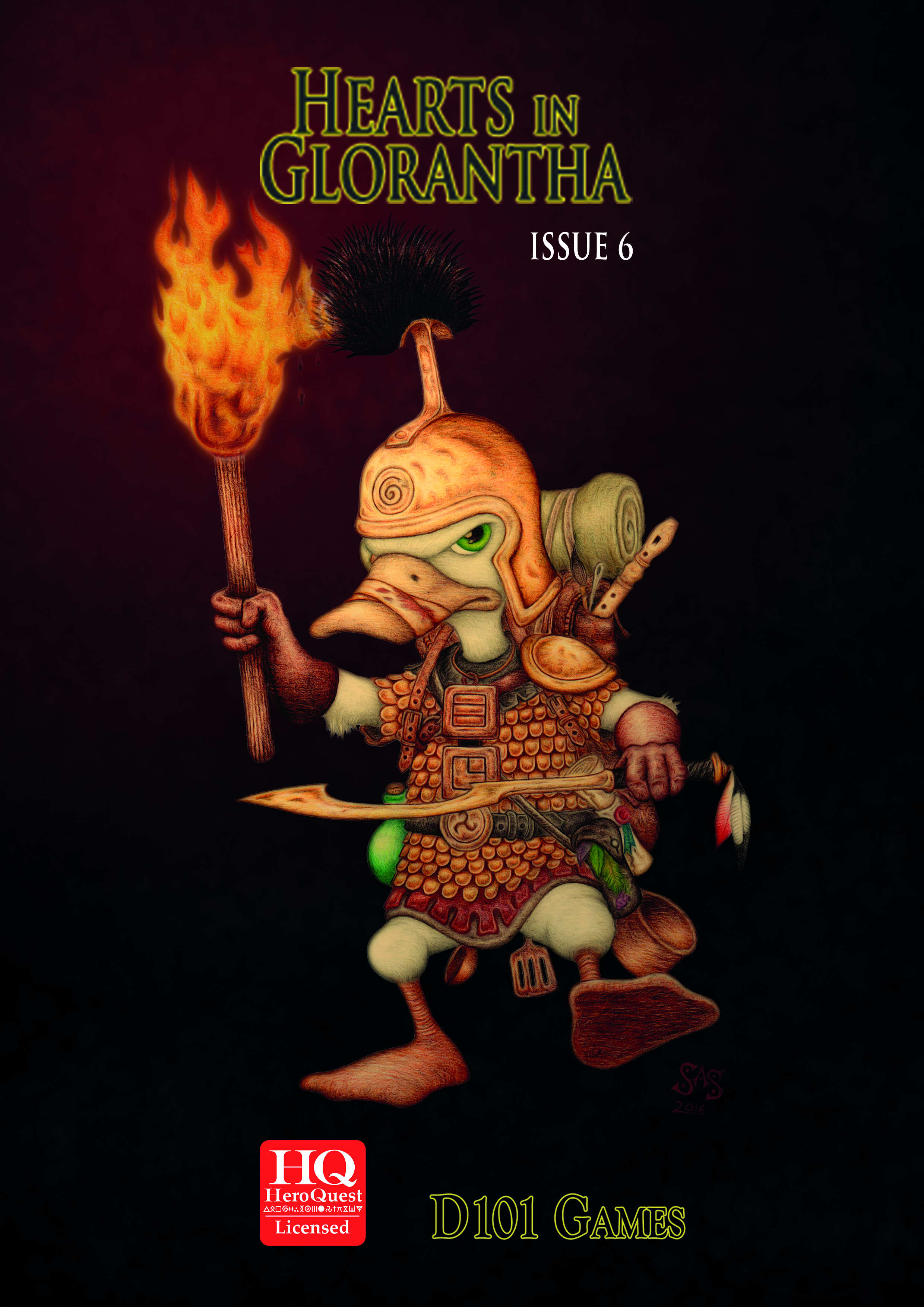 Hearts in Glorantha was created by Newt Newport in 2008, under his d101 Games imprint. It post-dates the golden age of Gloranthan fanzines, being one of the only such 'zines approved under Issaries' 2005 fan policy. It originally ran five issues, through 2012, with all of the issues being collected. In 2017, Hearts reappeared, and has published about one issue a year since, with the 7th issue flagged as the magazine's 10th anniversary. The magazine was then officially shut down at the end of October 2020.THEME ISSUES