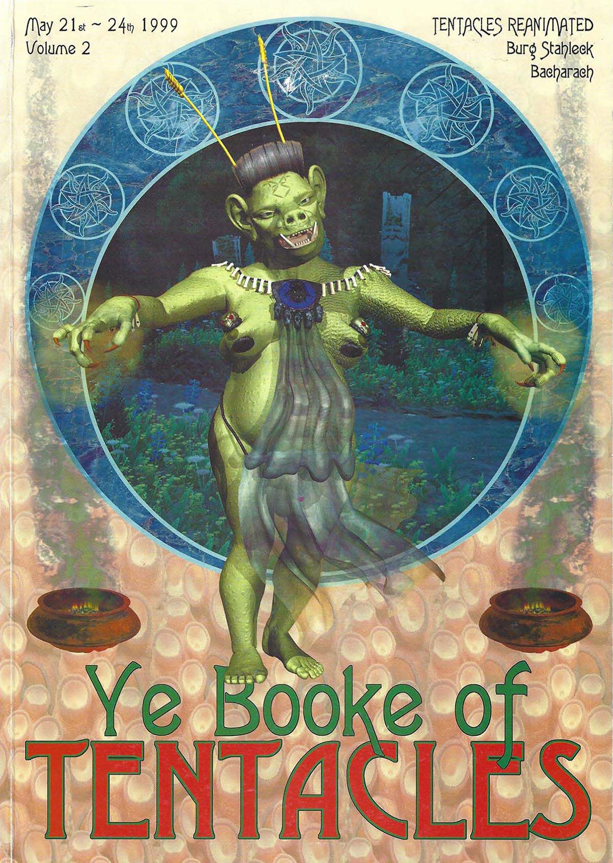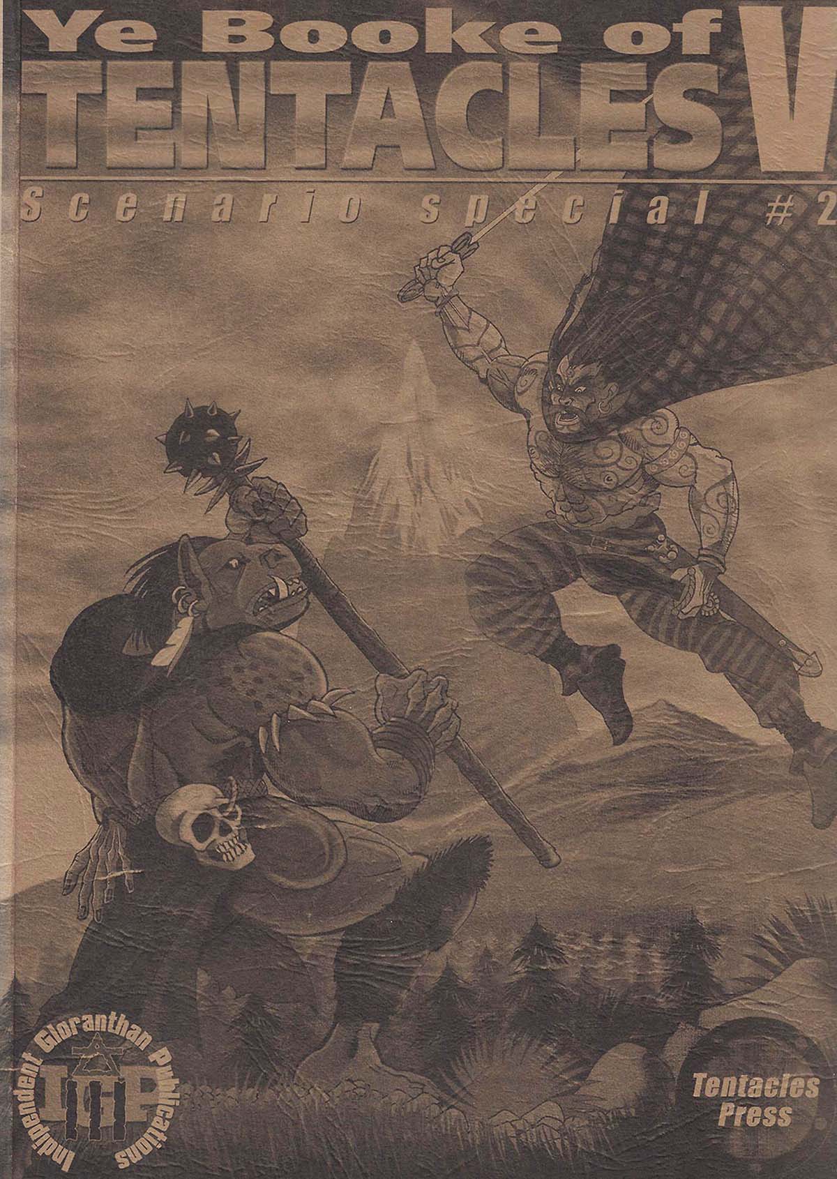 They put out a call for contributions and then produced a hefty 112-page book, which they called Ye Booke of Tentacles (1998). When Ye Booke of Tentacles Volume 2 (1999) appeared the next year, to raise funds for Tentacles Reanimated (1999), it had the only full-color cover for the series, and it also made it clear that the fund-raiser had become a magazine of sorts. Four more volumes appeared, though they became erratic in the twenty-first century, with the two Scenario Specials both appearing in 2003, then the sixth and final issue in 2006.